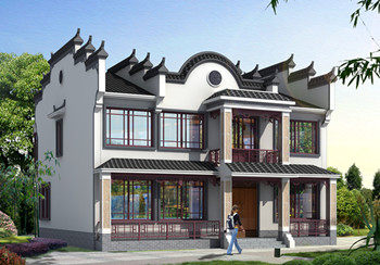 • 農村二層中式古典別墅圖片,帶院子,帶地下室